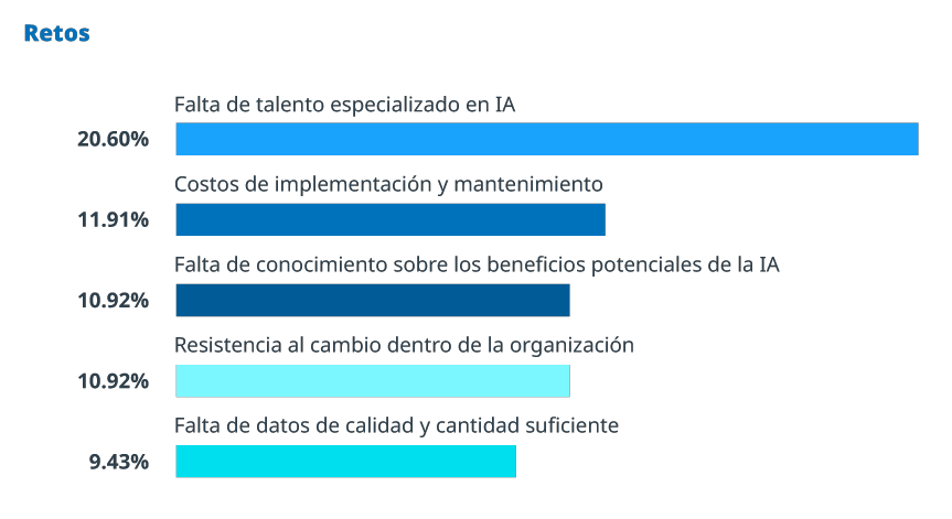 para este porcentaje, el mayor desafío para la adopción de IA es la falta de talento especializado.